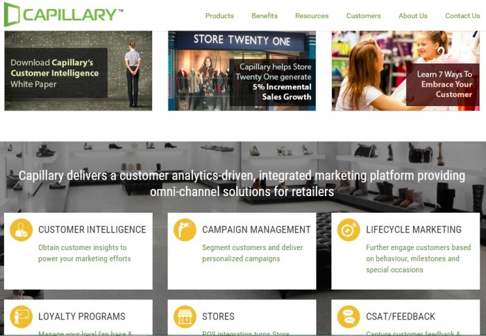 Capillary was founded in August 2008 by IIT Kharagpur alumni Aneesh Reddy and Krishna Mehra. It is into cloud-based software solutions that helps retailers engage with customers through mobile, social and in-store channels. The firm claims that its integrated marketing platform allows retailers to easily manage their customer data, gain insights and personalise engagement across multiple channels. The company caters primarily to the clients in the retail market.