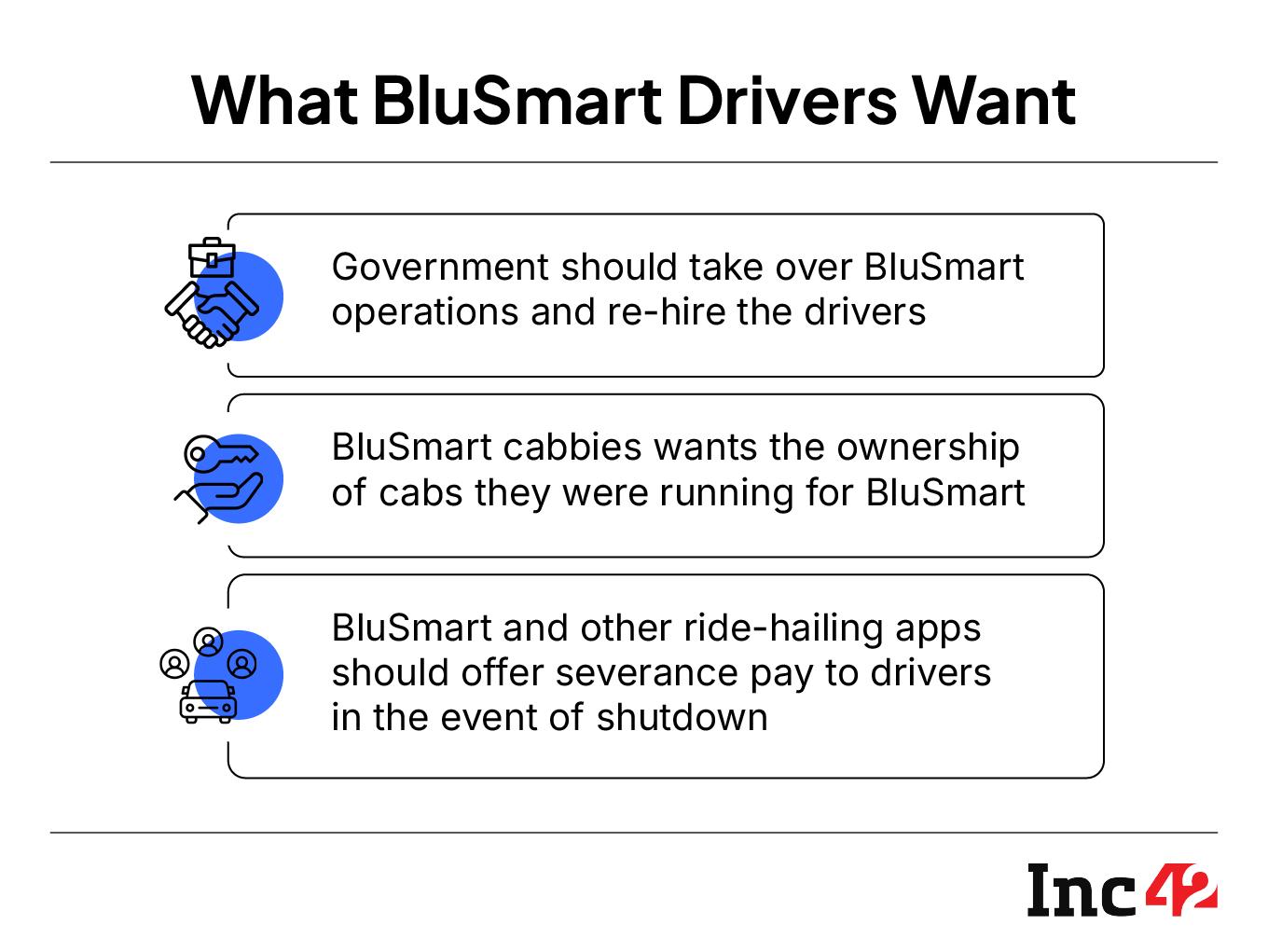 In addition, the protesting drivers also claimed the lease on the existing 8,000 cabs on BluSmart should be handed over to them, so that they can eventually own these vehicles and continue to ply their trade.