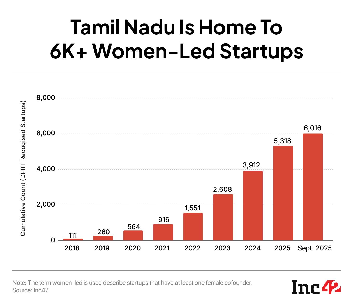 From just over 2,000 DPIIT-registered startups in 2021, Tamil Nadu’s startup ecosystem has grown to more than 12,000 today. More than half of these ventures are led by women.