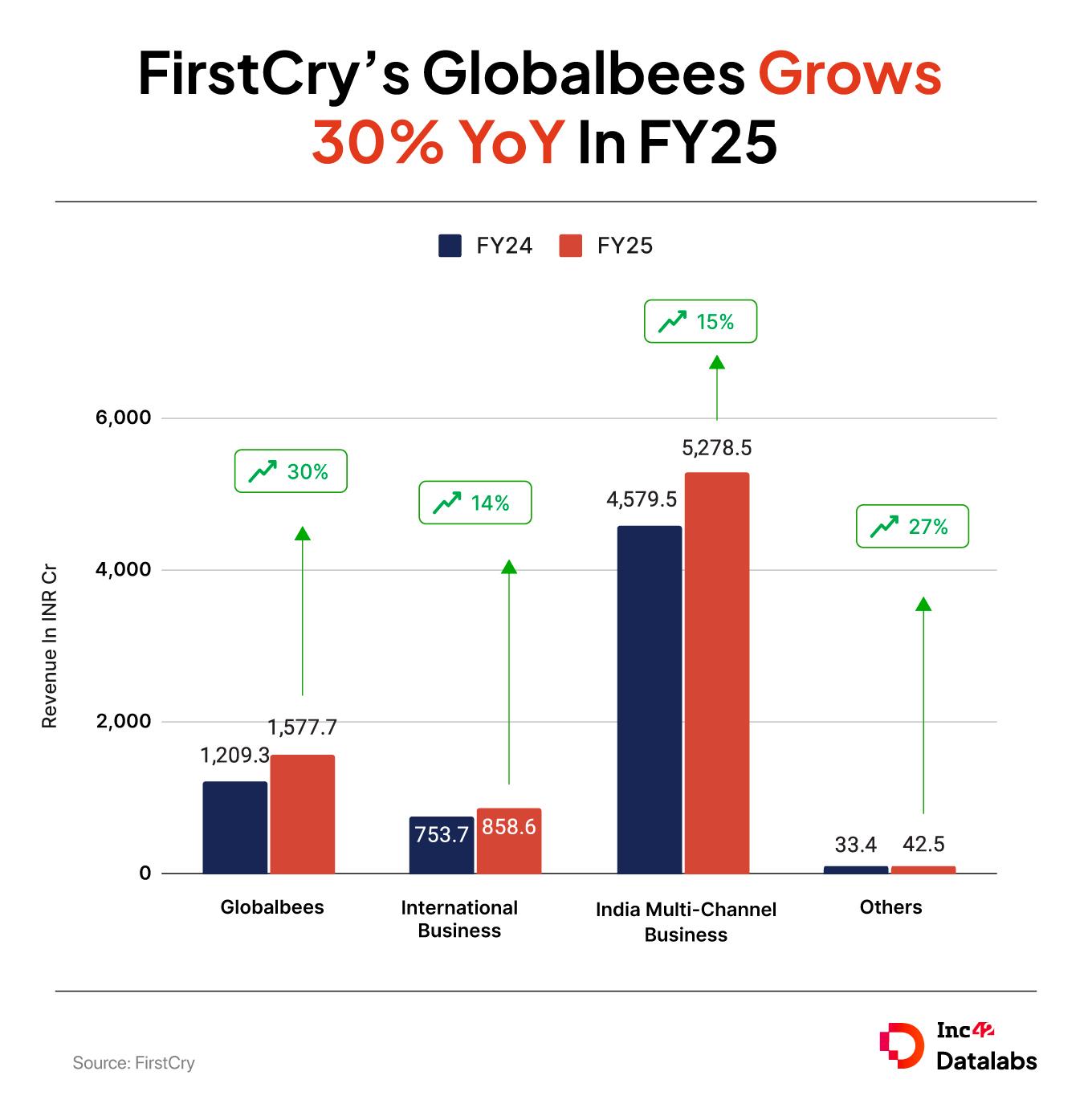 Globalbees, its house of brands subsidiary, reported a 30% increase in revenue to INR 1,578 Cr in FY25, while its adjusted EBITDA profit skyrocketed 856% to INR 22 Cr.