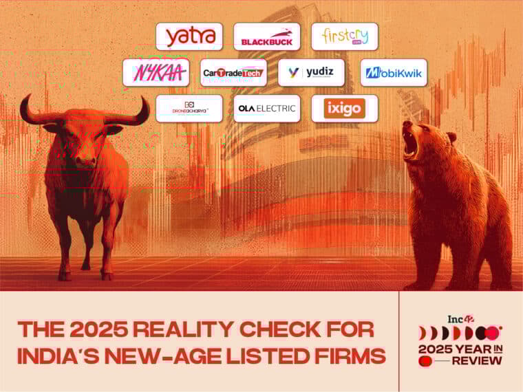With 18 new listings, 2025 was a record year for the homegrown startup ecosystem on the public markets front. New-age tech companies like Meesho, Wakefit, Lenskart, cumulatively raised a staggering INR 41K Cr from the public market via their IPOs during the calendar year. But who were the biggest gainers and losers among the new-age tech stocks in 2025?