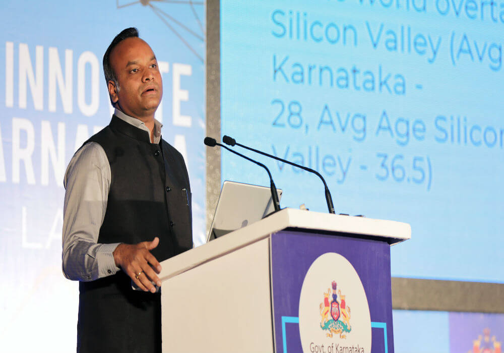 The vision of Innovate Karnataka is to see Karnataka as a global first choice of innovation and technology by adopting policies which spur 100% digitisation of health, agriculture and other domains and enable inclusive digital growth across geographies and all strata of society.