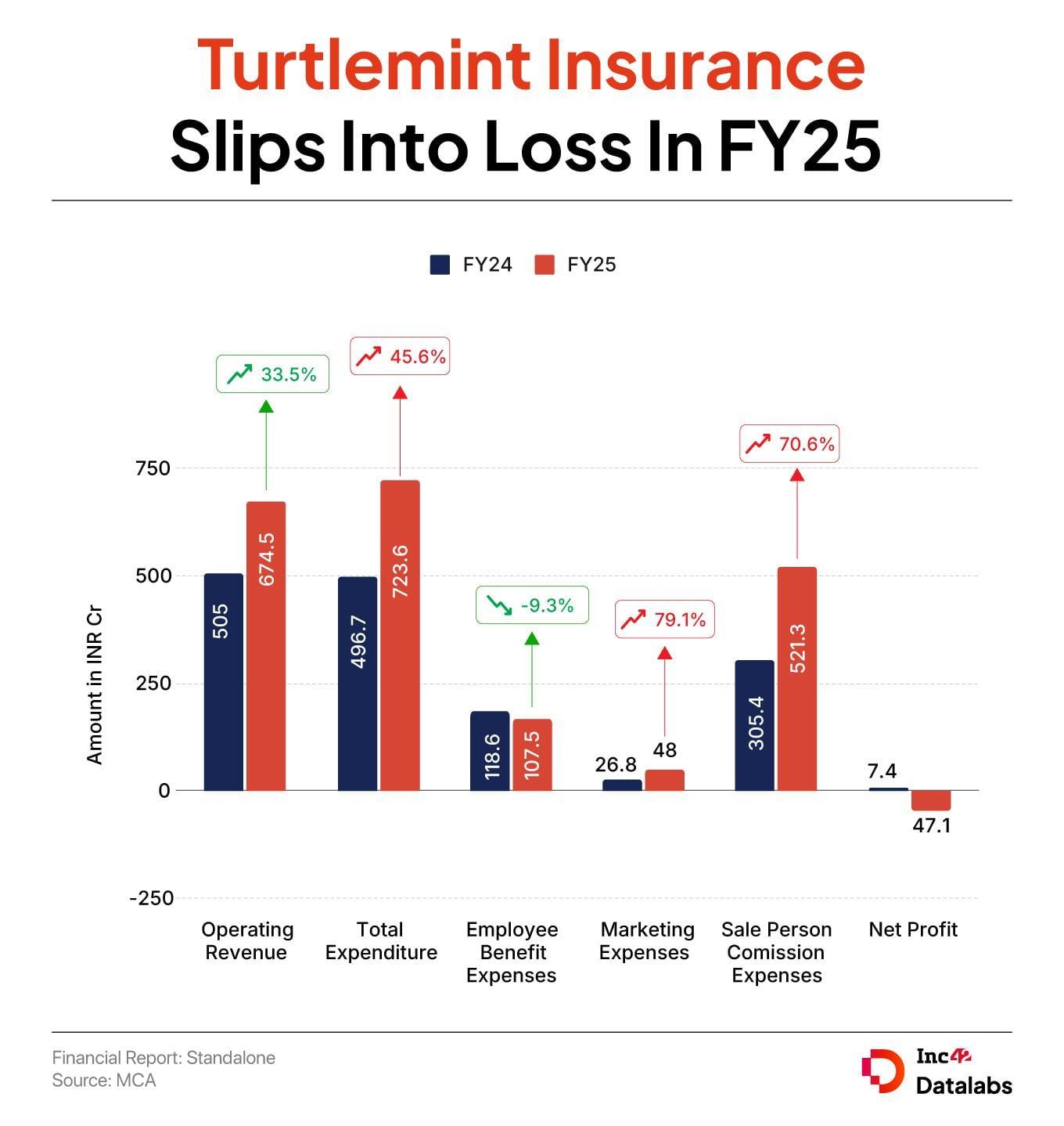 On the financial front, Turtlemint’s insurance arm, Turtlemint Insurance, slipped into the red, in FY25. It reported a net loss of INR 47.1 Cr as against a profit of INR 7.4 Cr in FY24. However, operating revenue jumped 33.6% to INR 674.5 Cr from INR 505 Cr in FY24.