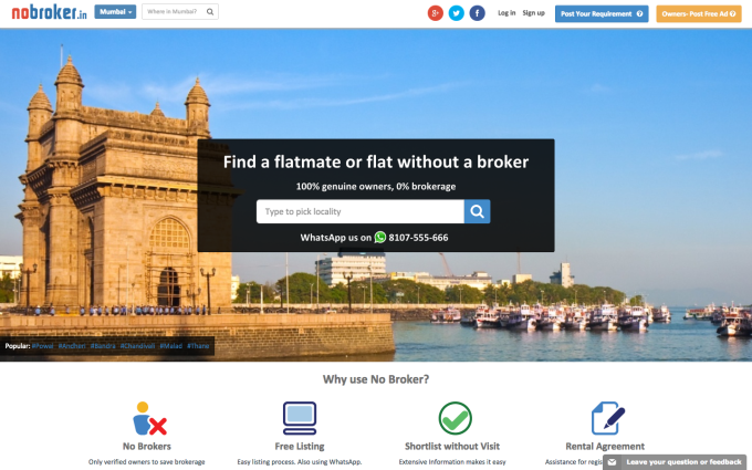 Peer-To-Peer Property Listing Startup NoBroker Raises $3 Mn From SAIF & Fulcrum
