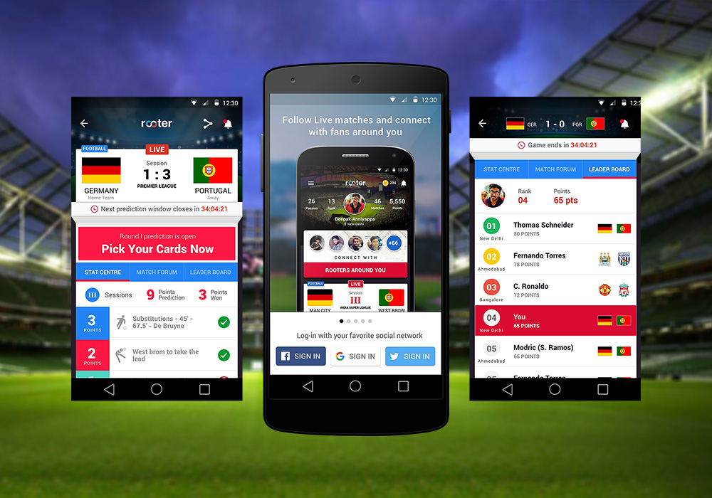 Rooter was launched in May 2016 by Piyush Kumar, Akshat Goel, and Soham Sinha to bridge the gap in the sports fan engagement market through a tech product. The platform currently covers football, cricket, tennis and basketball.
