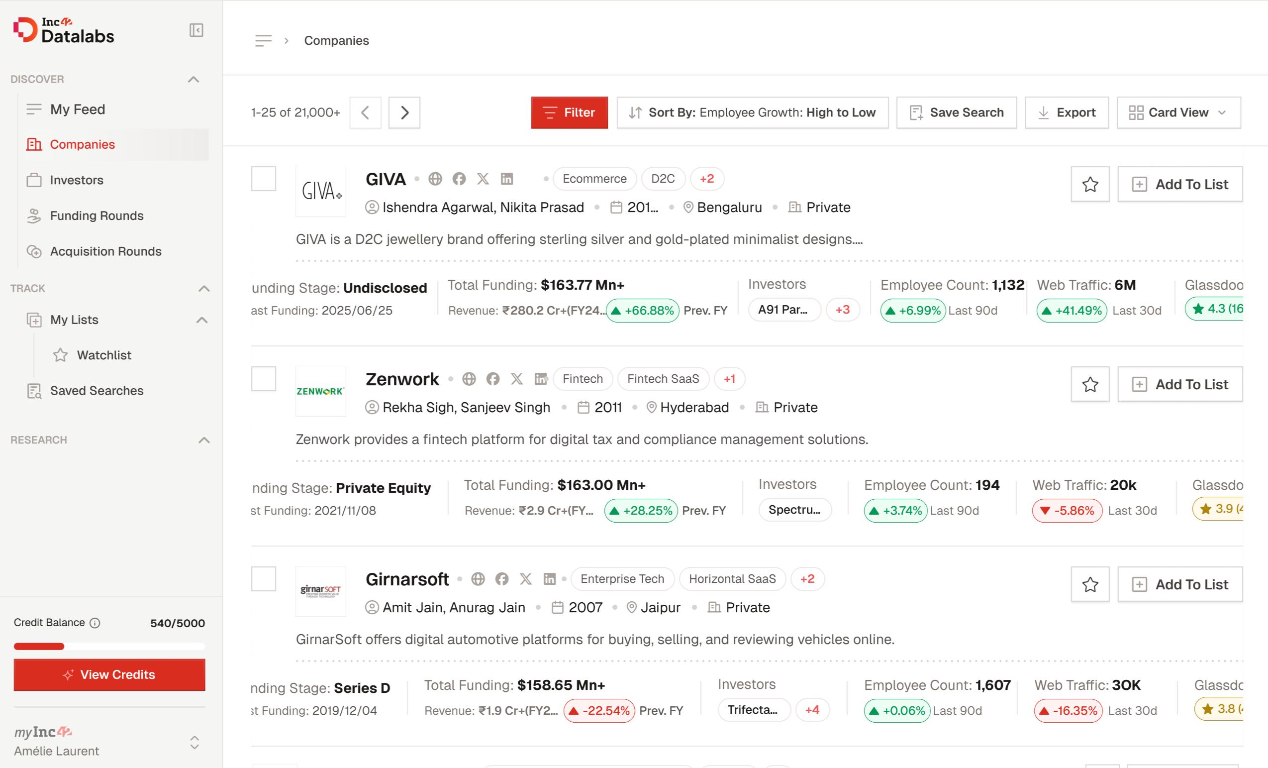 Pinpoint exact-fit targets by sector, stage, revenue, city and more — shortlist done in seconds.