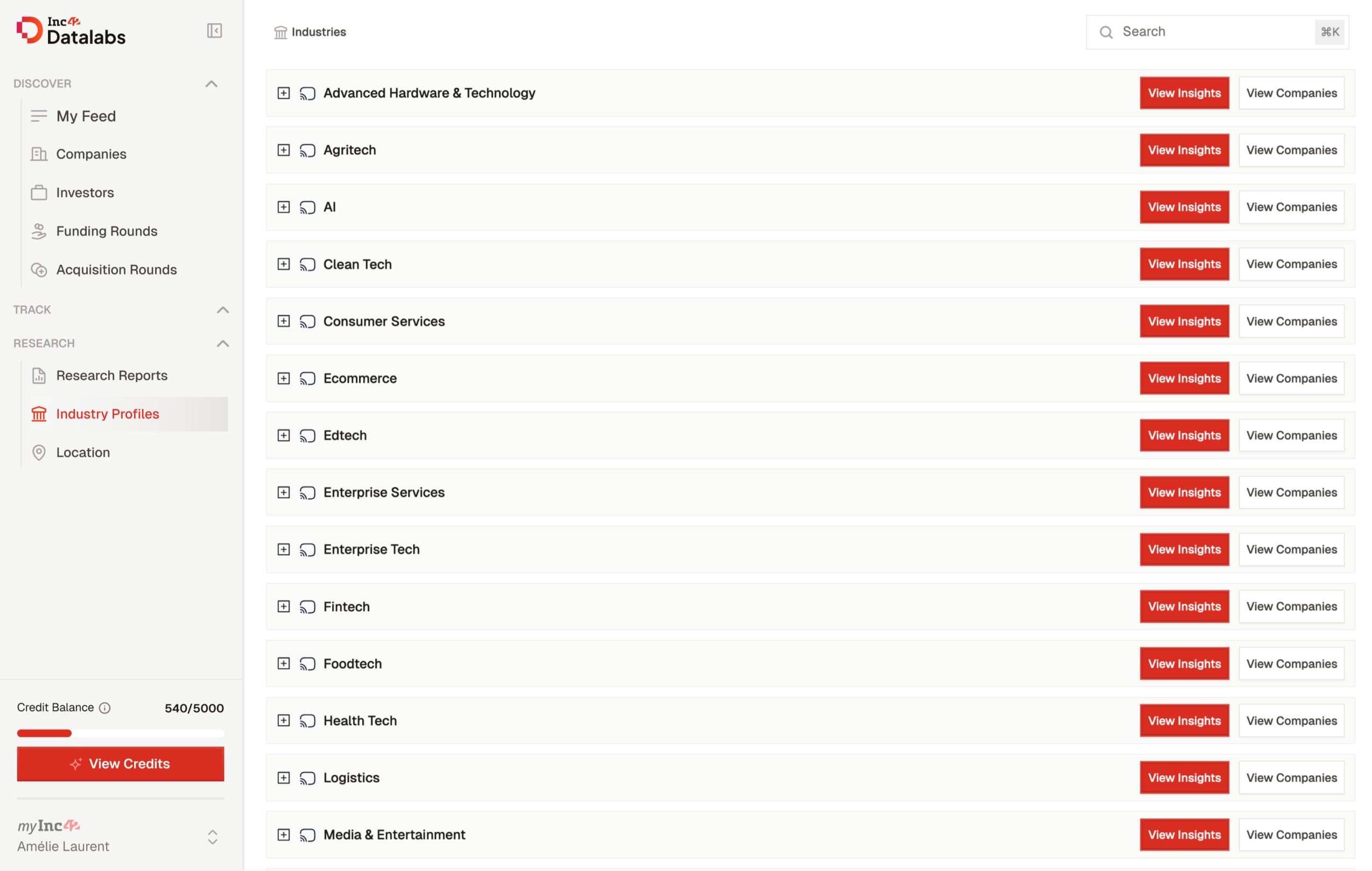 | Search & Discovery (Company · Investor · Funding · M&A · Industry) |
