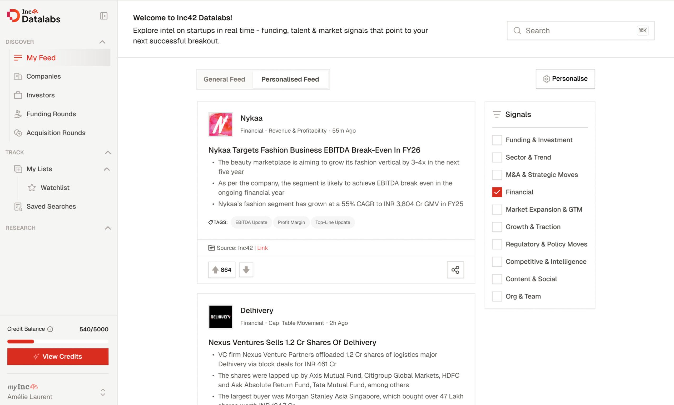 Personalised feed and WhatsApp/Email alerts surface funding, market and talent moves within hours.