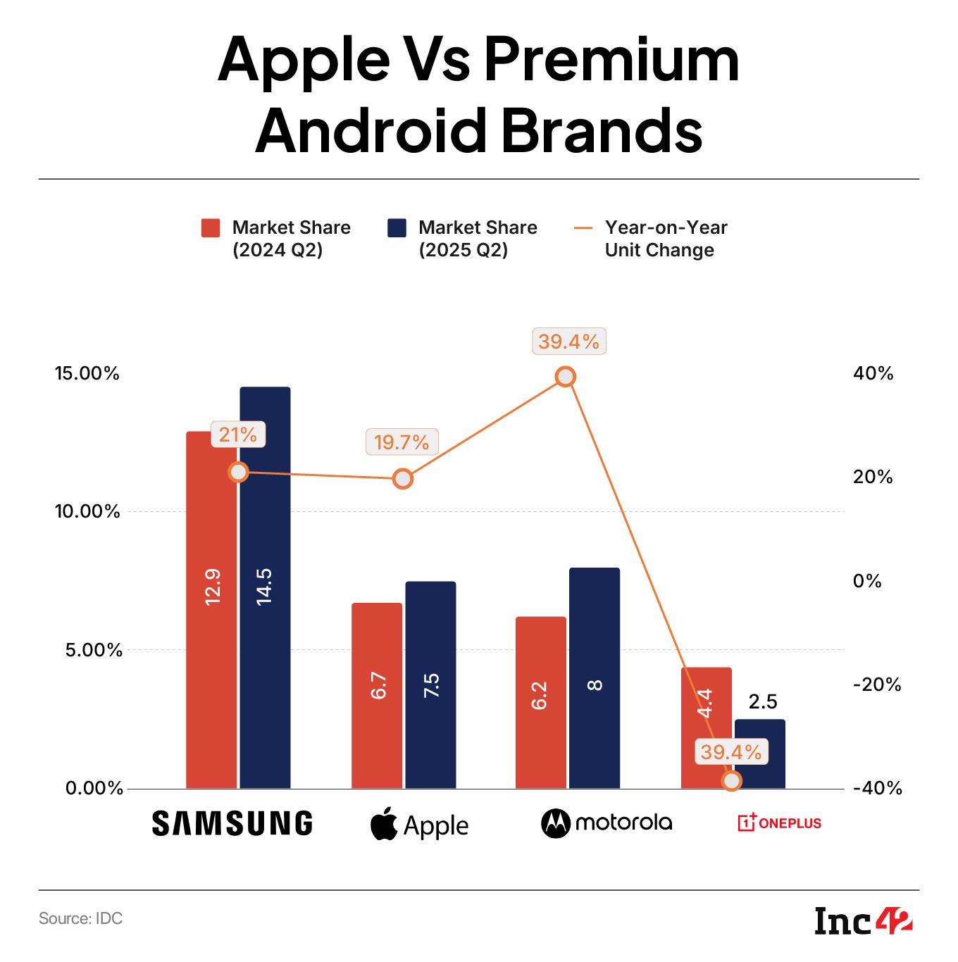 “India is experiencing a significant shift in its smartphone market, driven by consumer maturity and a desire for more advanced devices. As a result, the trend of premiumisation is accelerating, with a growing number of people buying their third or fourth smartphone,” said Neil Shah, the cofounder of Counterpoint Research.