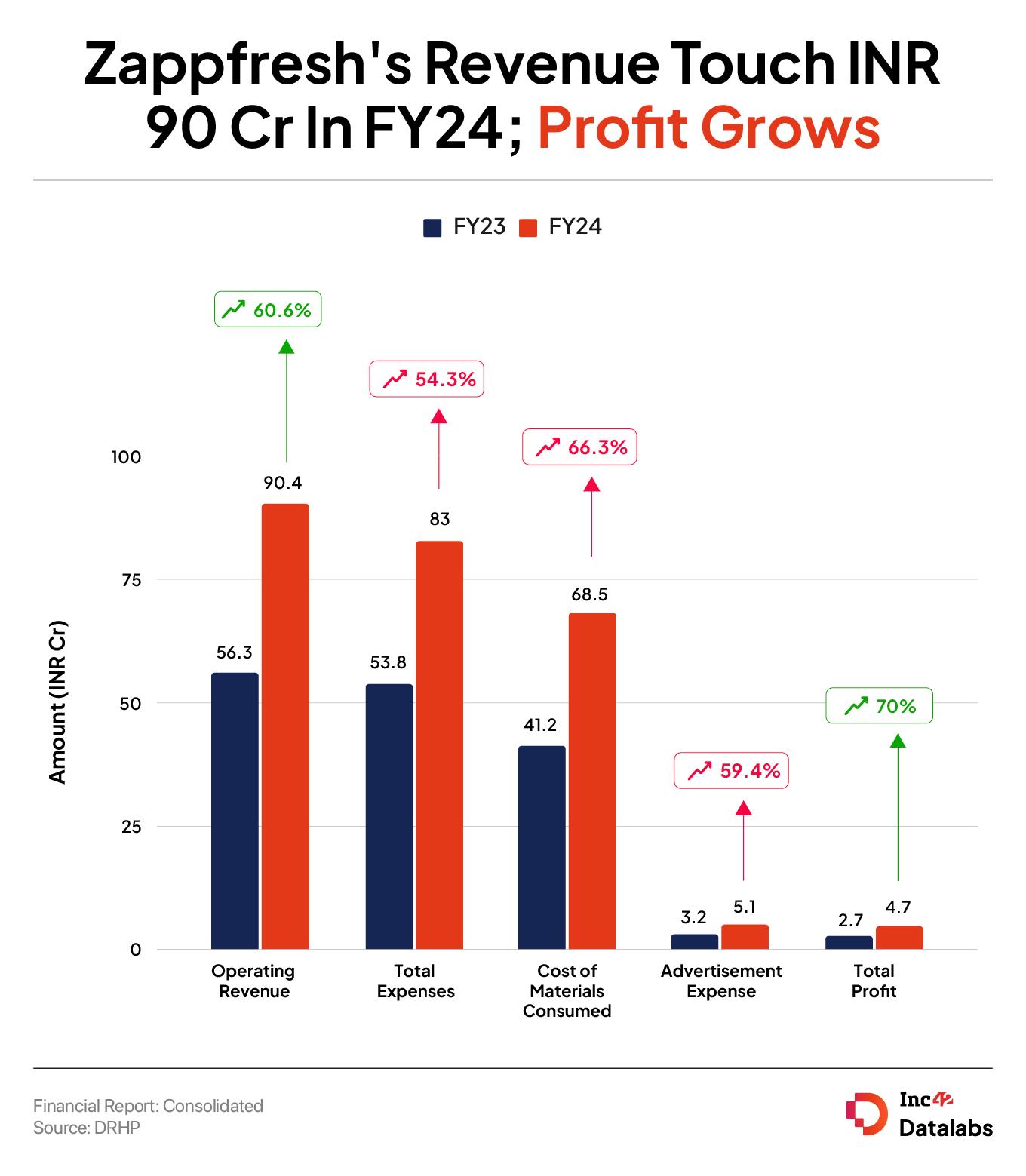 Zappfresh’s net profit for the fiscal 2023-24 (FY24) surged 70% to INR 4.7 Cr from INR 2.7 Cr a year back, while its operating revenue surged more than 60% to INR 90.4 Cr from INR 56.3 Cr. Moving forth, Manchada predicts the company’s topline to zoom to INR 140 Cr to INR 150 Cr in FY25 and further surge to INR 260 Cr in FY26.