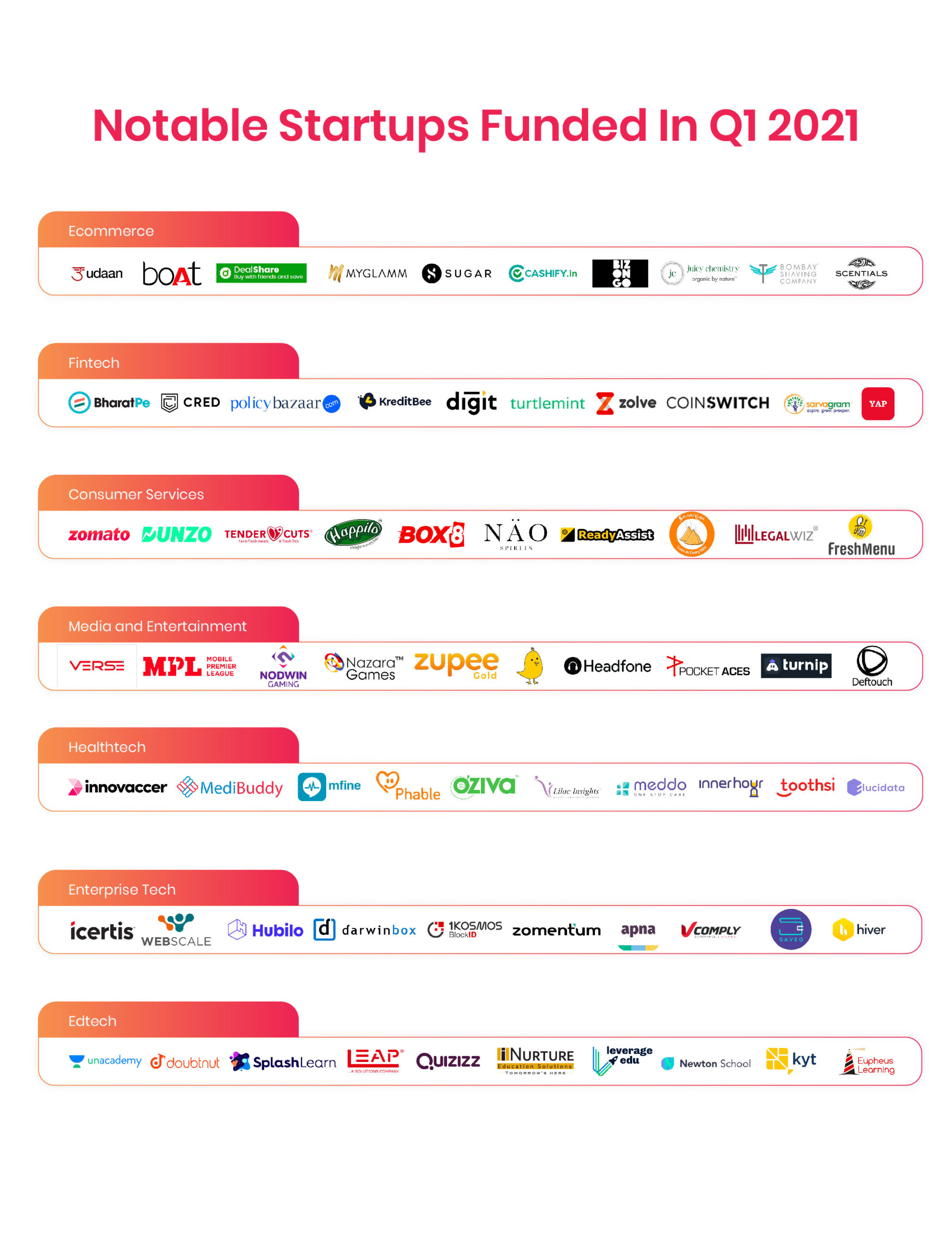 Fintech was the most preferred startup sector in Q1 2021. Compared to the previous quarter (Q4 2020), the number of funding deals was 26% higher. It was also the top startup sector in 2020.