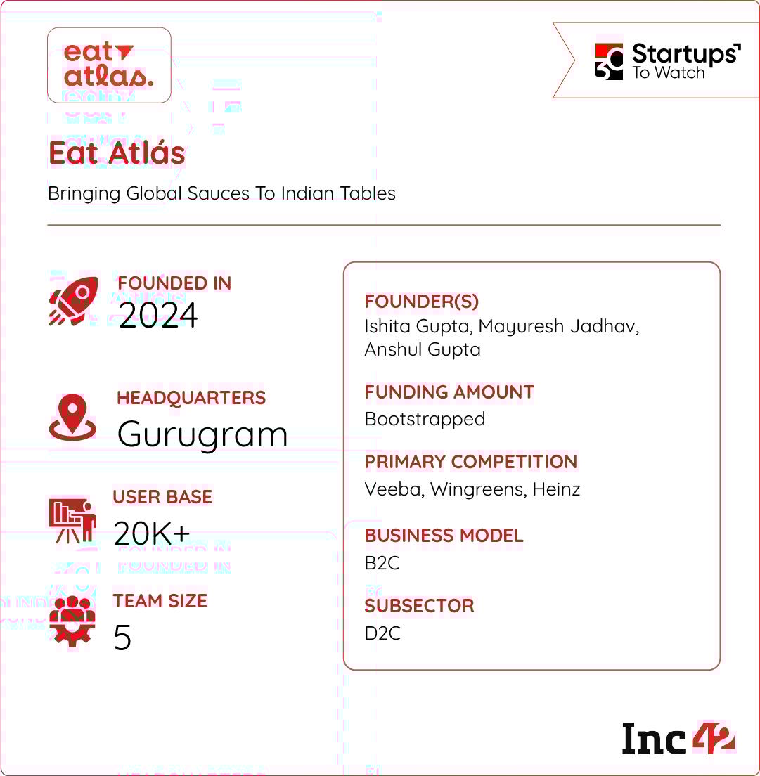 Launched in 2024 by Ishita Gupta, Mayuresh Jadhav and Anshul Gupta, Gurugram-based Eat Atlas crafts dips and sauces inspired by global cuisines such as China’s dochi, Korea’s gochujang, and Bhutan’s ema datshi.