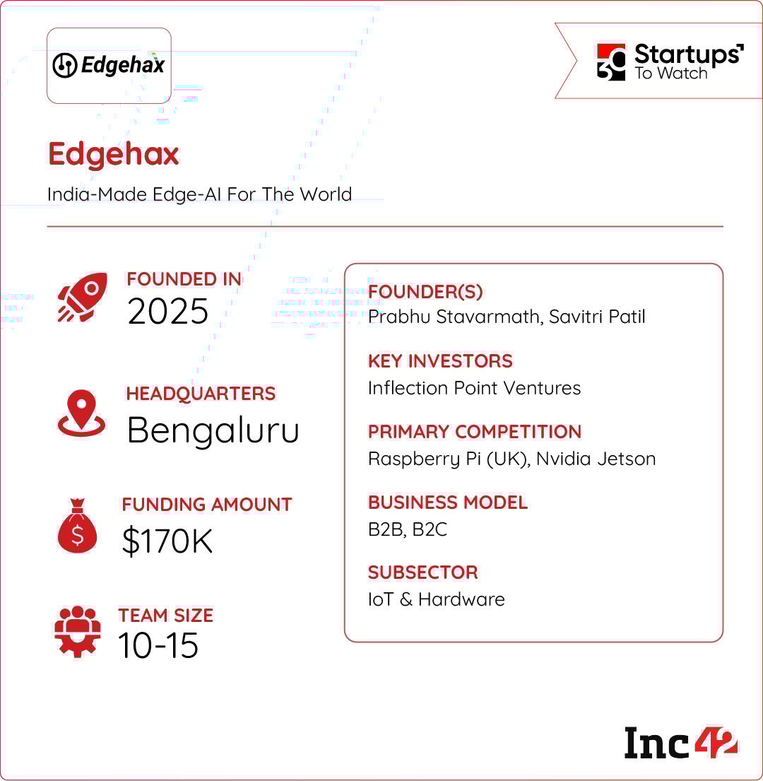 Founded in 2025 by Prabhu Stavarmath and Savitri Patil, Edgehax is solving this problem by building India’s first full-stack edge-AI hardware platform.