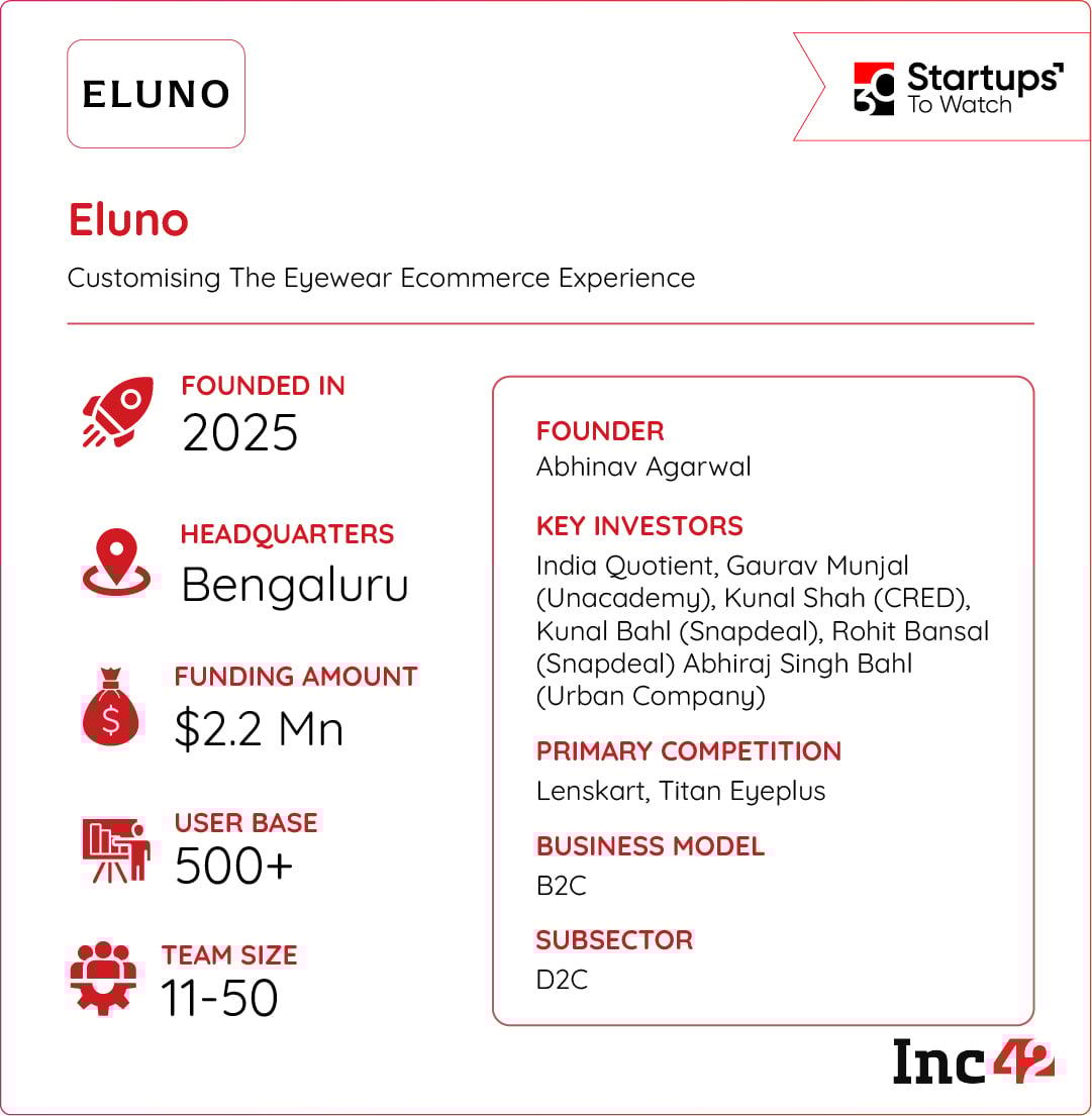 Founded in 2025 by former Unacademy CBO Abhinav Agarwal, Eluno is a D2C eyewear brand with a strong focus on personalisation.