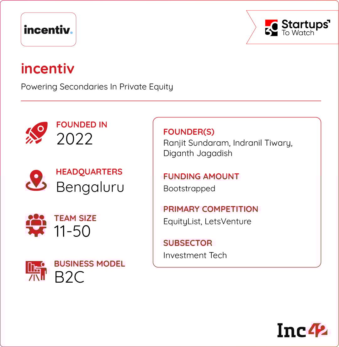 Founded in 2022 by Ranjit Sundaram, Diganth Jagadish and Indranil Tiwary, incentiv is working to fix this. The fintech startup operates a private market discovery platform that simplifies early liquidity and equity management for startups and their stakeholders.