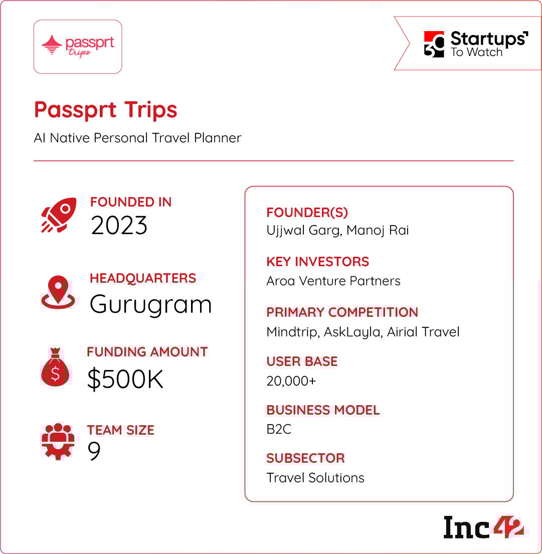 Founded in 2023 by Ujjwal Garg and Manoj Rai, Passprt Trips is building an AI native platform that acts as a personal travel advisor. It combines discovery, planning, seamless booking, and on-trip support into a single interface.