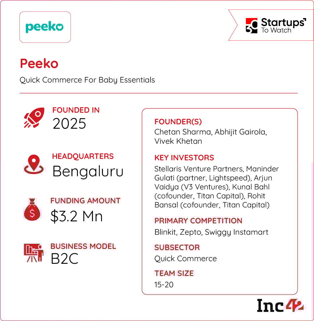 Founded in 2025 by former Leap executives Chetan Sharma and Abhijit Gairola, and ex-OYO executive Vivek Khetan, Peeko is jumping on to the quick commerce bandwagon, but with a sharp focus on baby products.