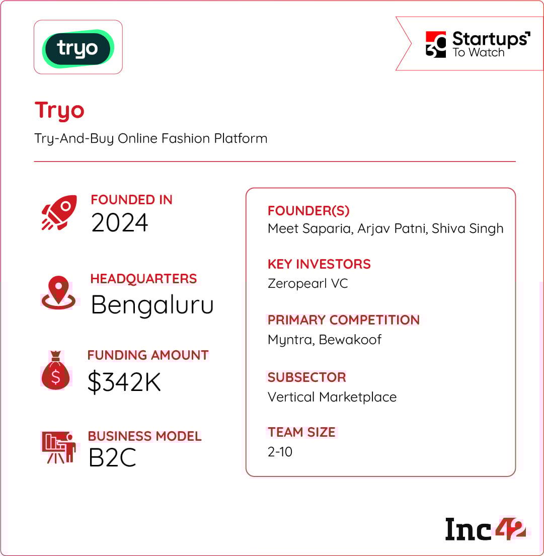 Founded in 2025 by Meet Saparia, Arjav Patni, and Shiva Singh, Tryo is addressing this gap with a “Try First, Pay Later” model. Customers can order up to ten clothing items in various sizes and styles with zero upfront payment.