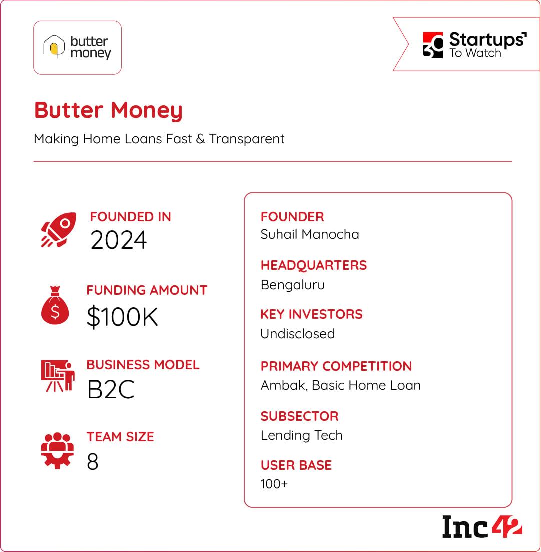 Butter Money, founded in December 2024 by ex-Antler entrepreneur-in-residence Suhail Manocha, aims to make home loans transparent, fast, and hassle-free. The Bengaluru-based fintech digitises the entire home loan journey, letting users compare options from over 125 banks, discover personalised interest rates, and access easy-to-understand educational content.