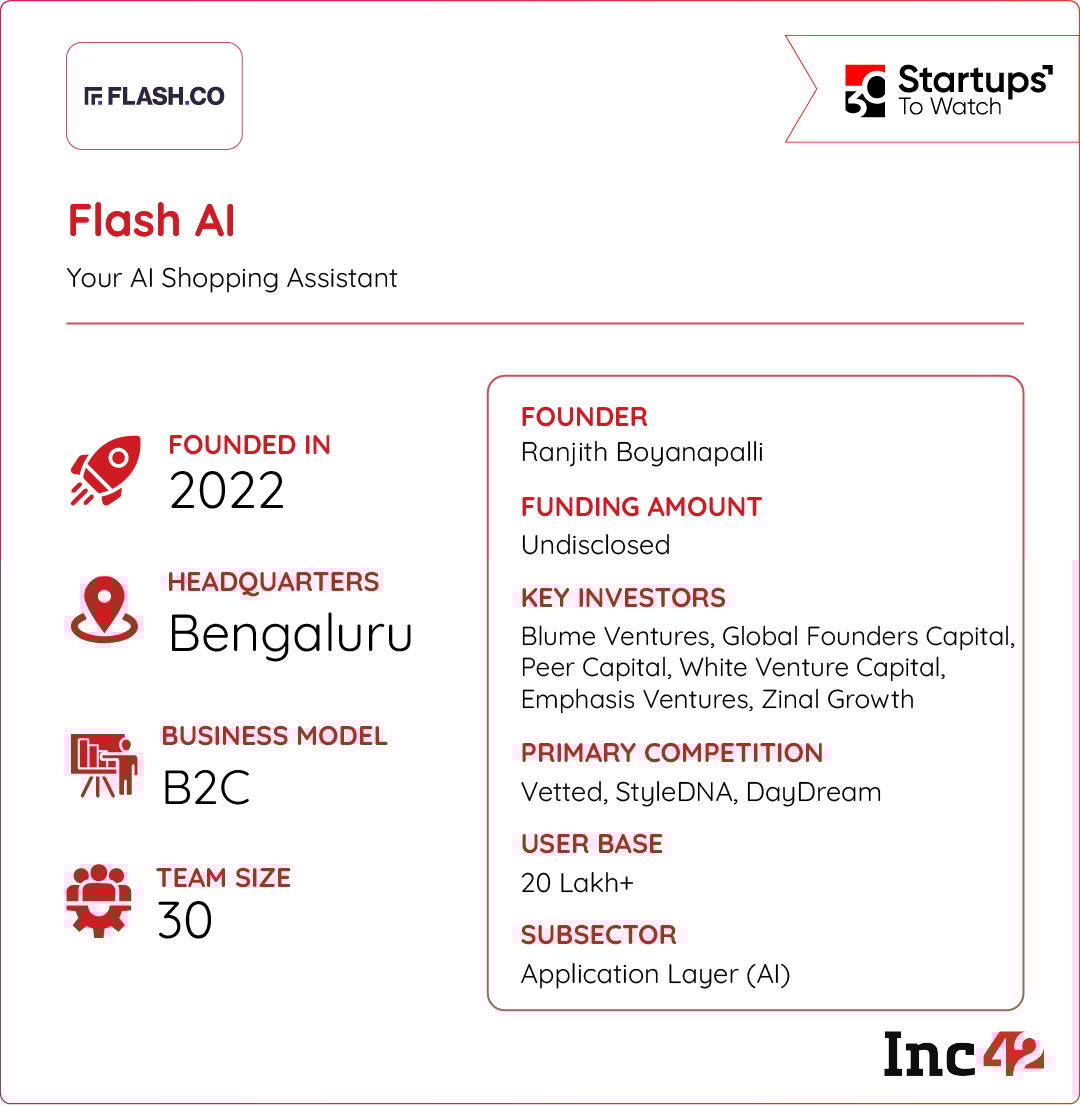 Flash AI, founded in April 2022 by Flipkart VP Ranjith Boyanapalli, offers a smarter way to shop. The startup provides an AI-powered shopping assistant that help deliver instant, AI-generated insights to help consumers make informed decisions.