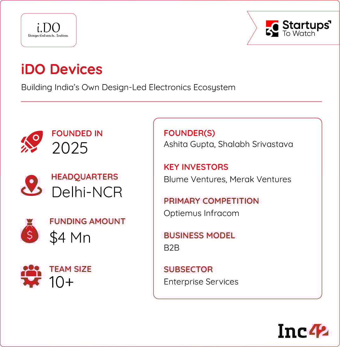 Ashita Gupta and Shalabh Srivastava founded iDO Devices in 2025 to reverse this trend. Headquartered in Noida, the startup combines Indian design capabilities with an extensive original design manufacturing (ODM) ecosystem, empowering it to craft consumer tech products tailored to the specific needs of the customer.