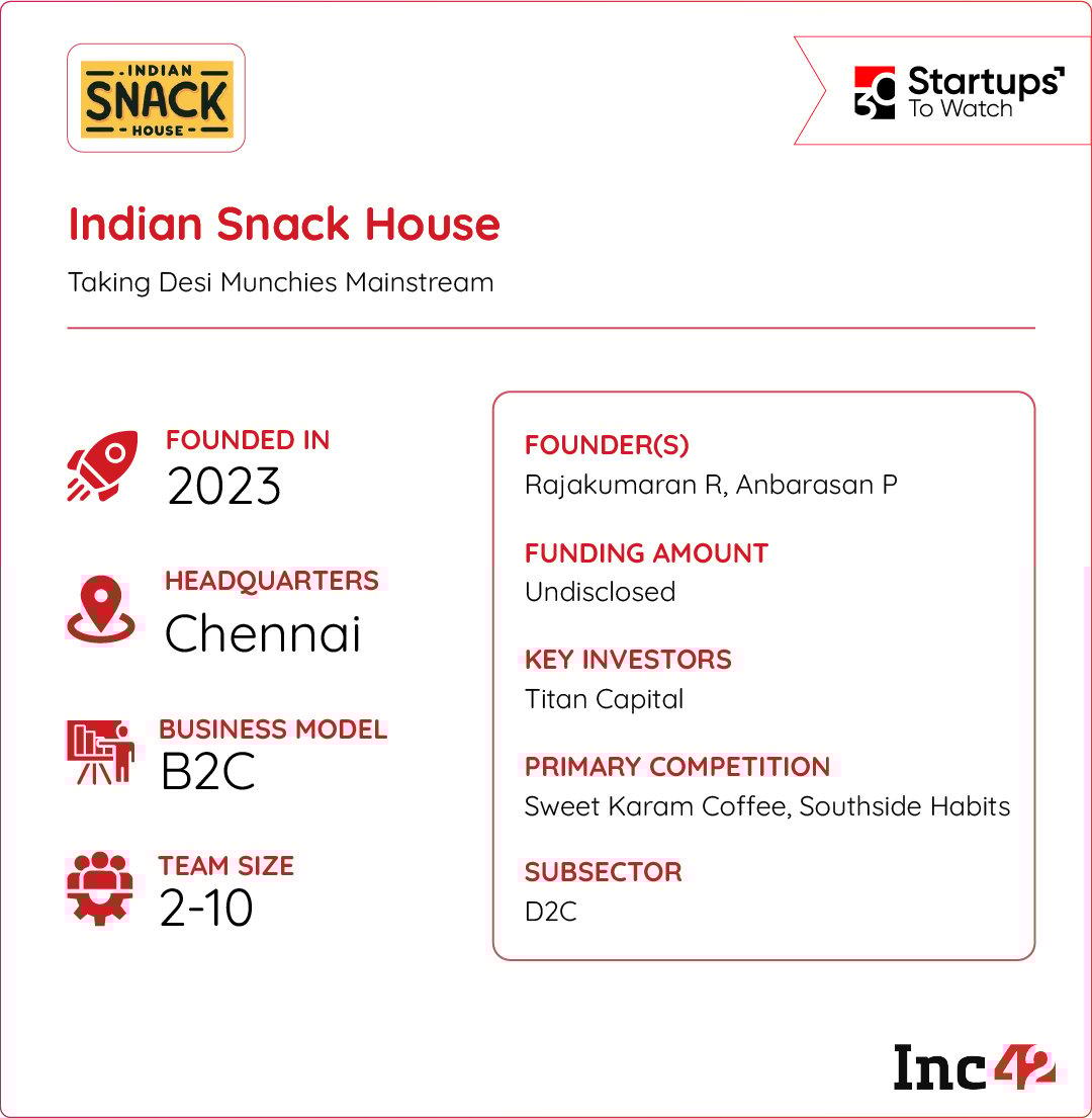 Realising that there was a huge unmet demand for a trusted, clean-label D2C platform dedicated to native snacks, ex-ShopUp executive Rajakumaran R and Anbarasan Siva founded Indian Snack House in 2023.