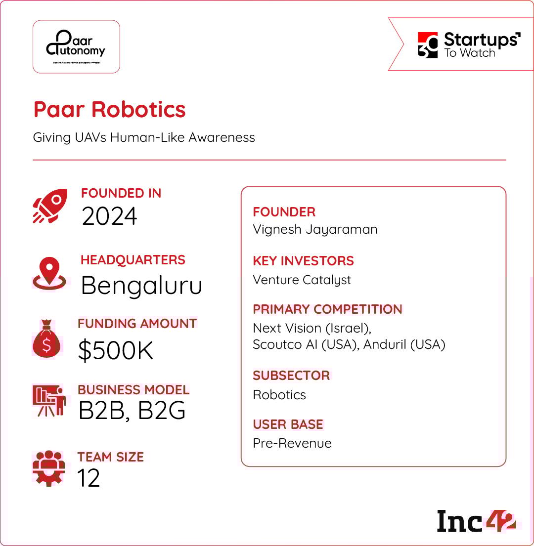 The Bengaluru-based startup is building advanced navigation and sensing AI software systems for military-grade drones, robotics, as well as intelligence, surveillance and reconnaissance (ISR) applications.