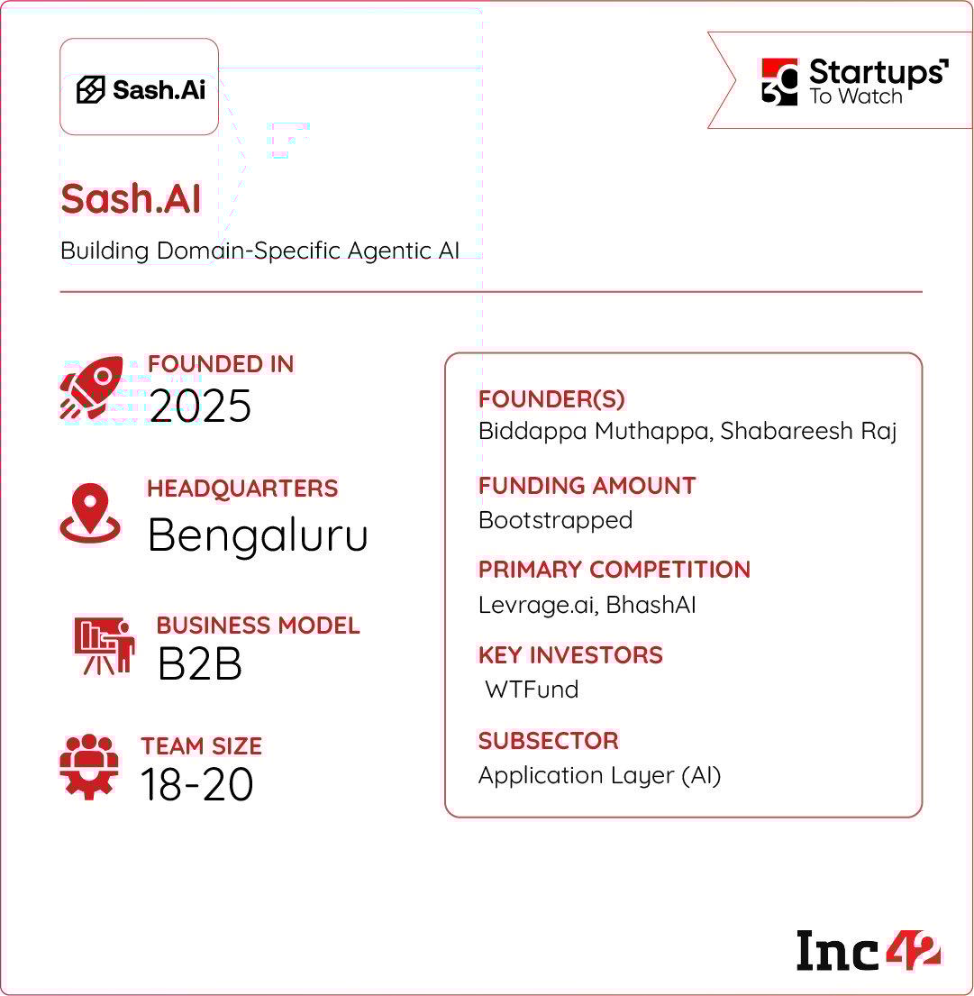 For global capability centres (GCCs) and large enterprises, adopting GenAI isn’t straightforward. Many projects fall short because they don’t align with domain needs, lack specificity, or fail to integrate into everyday workflows. To solve this, Biddappa Muthappa and Shabareesh Raj founded Sash.AI in 2025.