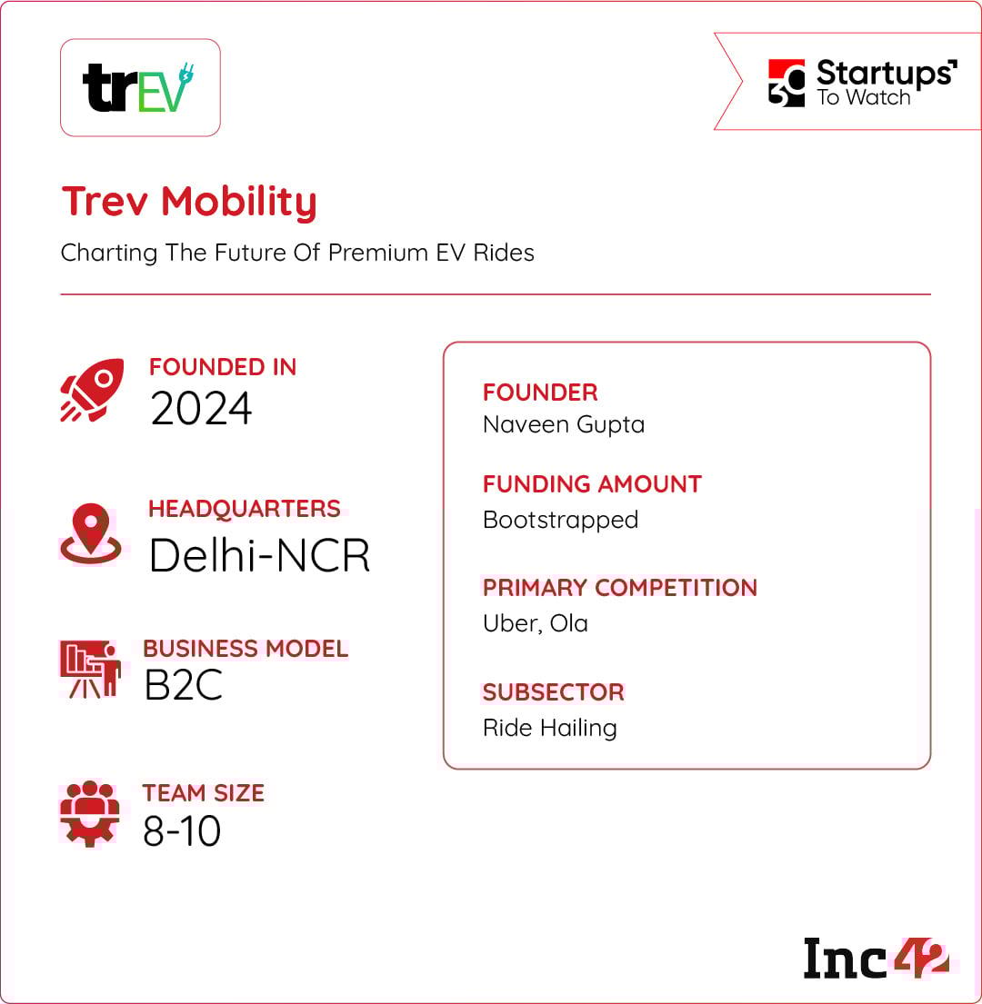 Spotting this opportunity, ex-Zoomcar India head Naveen Gupta launched Trev Mobility in 2024. The startup runs an all-electric ride-hailing service using spacious SUVs that are equipped with comfortable interiors and ambient cabins.