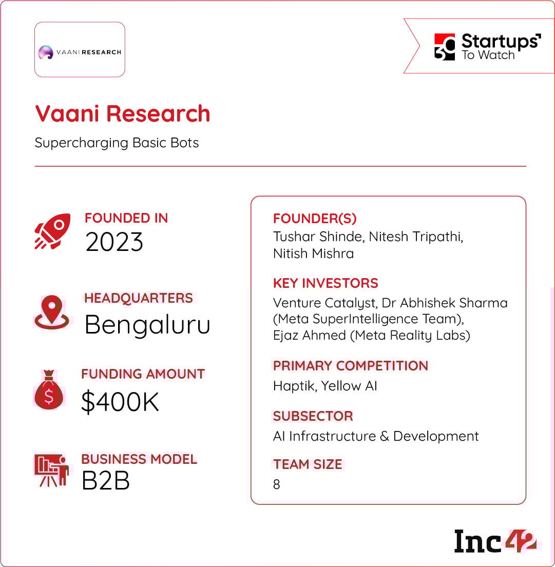 In 2023, they founded Bengaluru-based Vaani Research Labs with a vision to build the ‘Stripe’ for Voice AI. The startup develops robust voice AI frameworks for enterprises, targeting customer support, lead generation, product qualification, and engagement lifecycles.