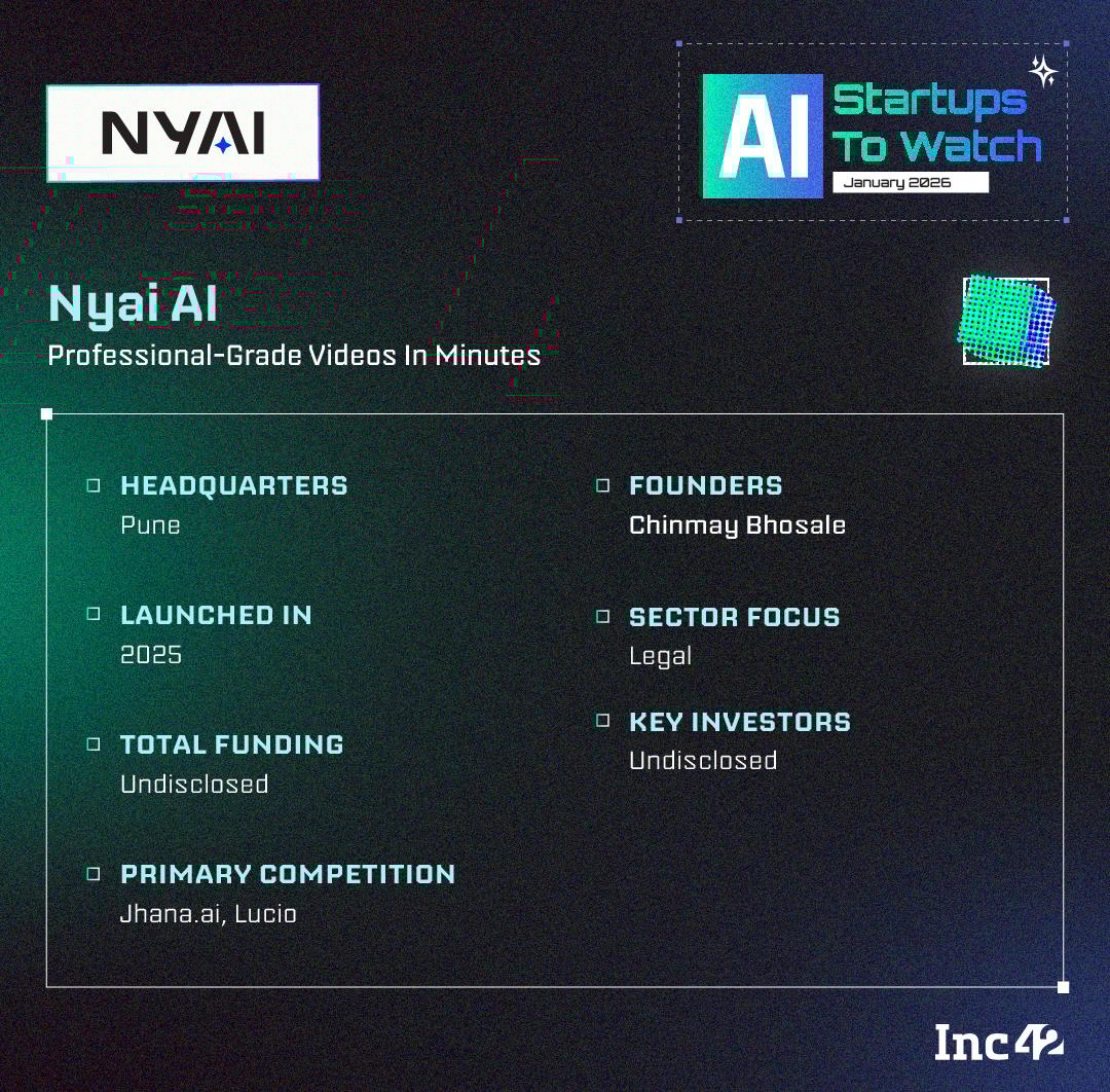 Founded in 2025 by lawyer Chinmay Bhosale, Pune-based NYAI is building a legal AI and regulatory intelligence platform focussed on Indian statutory law, regulations and compliance workflows.