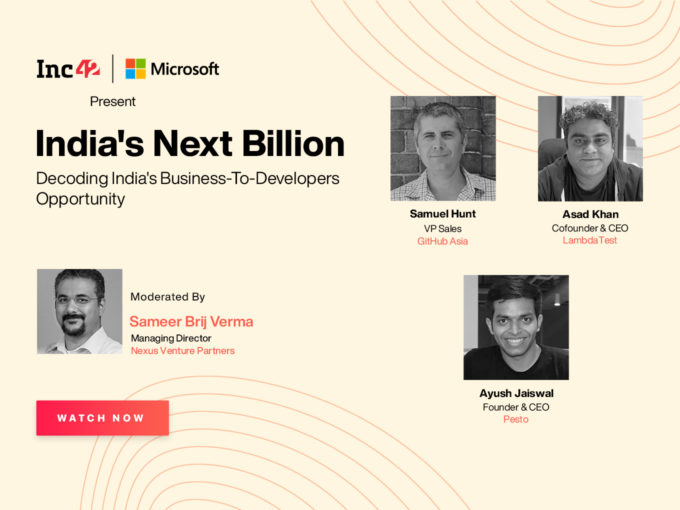 In our latest webinar, learn from experts such as LambdaTest cofounder & CEO Asad Khan, Pesto founder & CEO Ayush Jaiswal, and Samuel Hunt, VP Sales, GitHub Asia in this session, moderated by Sameer Brij Verma, managing director, Nexus Venture Partners.